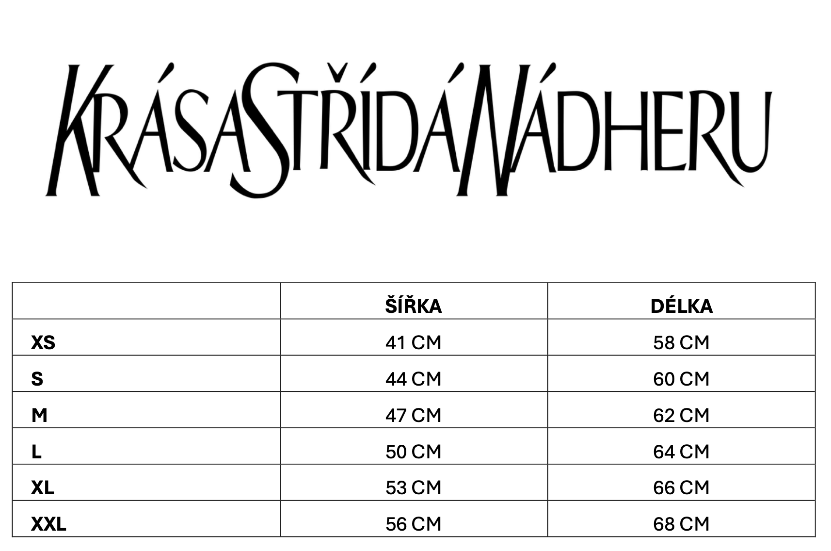 • Tabulka velikostí v galerii produktu